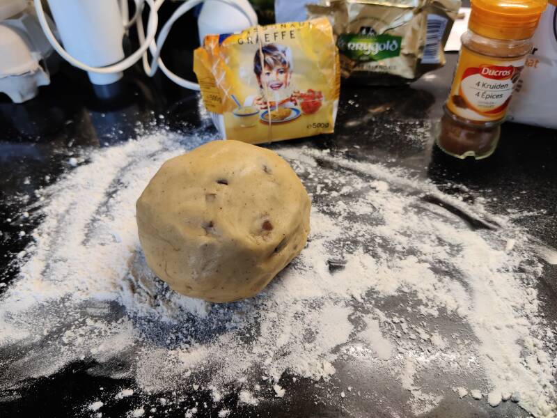 - het deeg nog eens goed kneden op een met bloem bestrooid werkblad