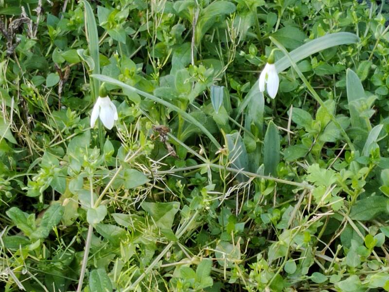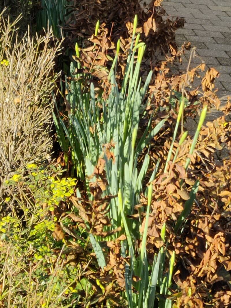 In de voortuinen zag ik ‘geen-sneeuw-klokjes’ en de paasbloemen staan klaar om met hun zonnige, gele bloemen de grauwe wereld op te vrolijken. Niet zo verwonderlijk, aangezien de thermometer al enkele dagen temperaturen van boven de tien graden meet.