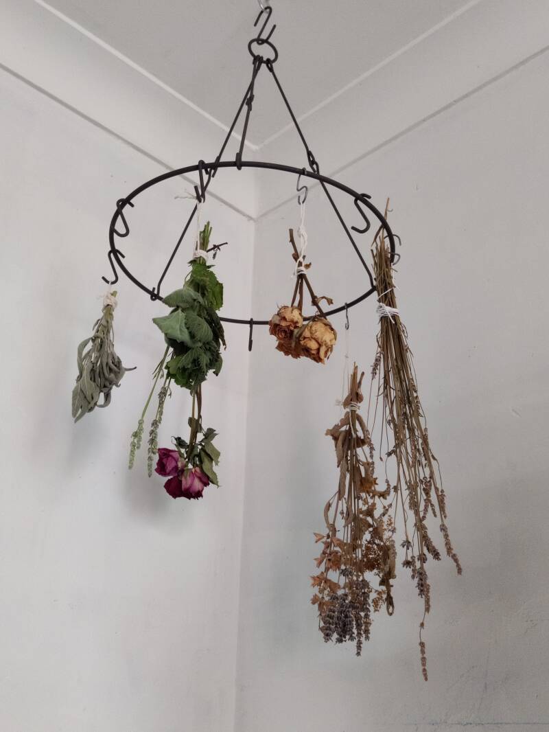En dus plukte ik vannacht, met mijn grotemoe in gedachten, een kruidenwis. Zo’n boeket van vers geplukte kruiden hang je op in je huis ter bescherming tegen negatieve invloeden.