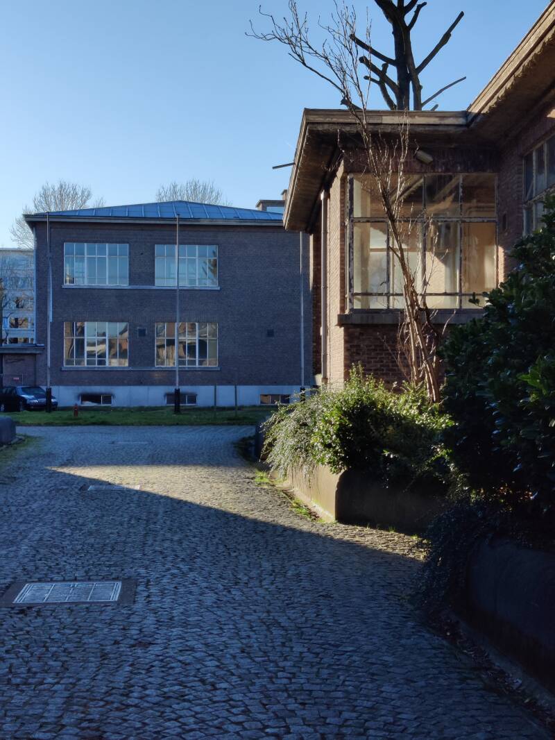 Tot mijn verwondering stuurde de GPS mij recht naar mijn oude studentenbuurt. Hij voerde me over de Rozemarijnbrug naar de Papegaaistraat en liet me via het Casinoplein en Marialand richting Sint Michielskerk rijden. Hoewel de verlaten faculteit er verwaarloosd bijlag en mijn oud kot er al even ‘deerlijk’ uitzag, voelde ik me opgelaten om terug te zijn in mijn vertrouwde studentenbuurt. Omdat mijn GPS niet op de hoogte was van de recentere verkeersaanpassingen in de Gentse binnenstad, bleef ik maar rondjes rijden … telkens opnieuw langs het Casinoplein, Marialand, de Hoogstraat … tot ik me overgaf aan mijn herinneringen, uitstapte en foto’s nam.